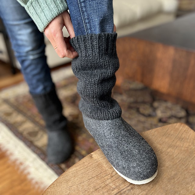 Qualität: Entworfen in der Schweiz. Handgefertigt in Nepal von lokalen Kunsthandwerkern. Erfahren Sie mehr über die Herstellung unserer Hausschuhe