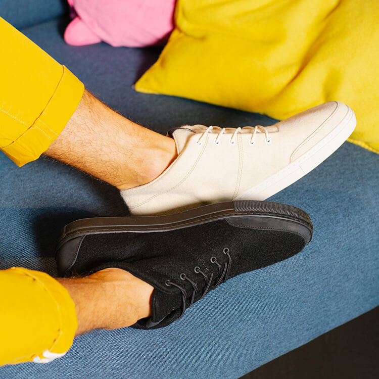 All White, All Black Kollektion. Unser klassischer Sky Wooler-Stil, mit einem neuen Look. Wir stellen unsere ersten monochromen weißen und schwarzen Sky Wooler Sneakers vor.
