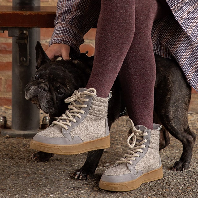 Stoff des Sneakers: 100% Wolle aus den Pyrenäen (50% Tarasconnaise, 50% mérinos)