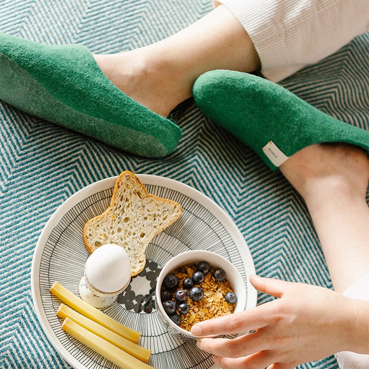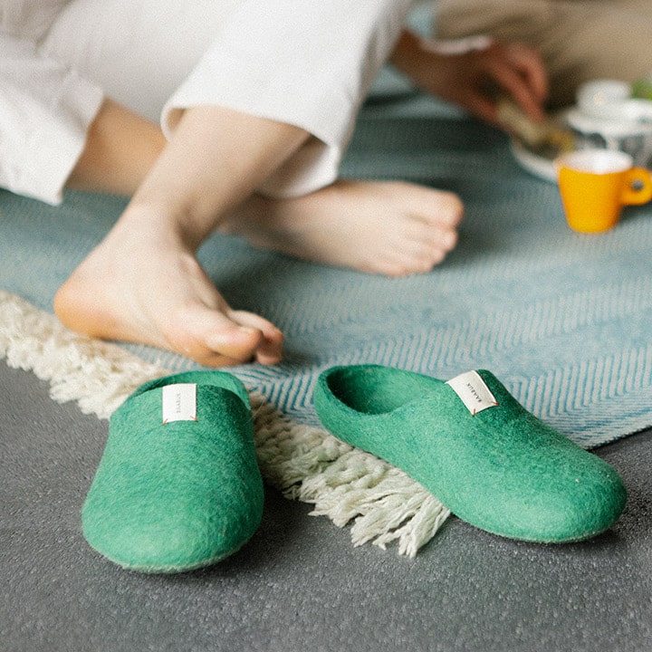 Qualité: Conçu en Suisse. Fabriqués à la main au Népal par des artisans locaux. En savoir plus sur la fabrication de nos pantoufles.