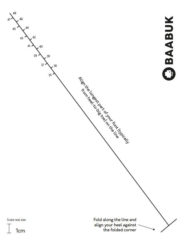 Baabuk boots fit similarly to our sneakers, with standard width and true-to-size length. Traditional lacing allows for more precise adjustment around the ankle and instep. Like slippers, fit can be fine-tuned with the insole: remove it for more room or add one for a snugger feel.